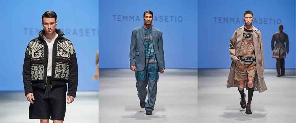 Temma Prasetio mengombinasikan tenun NTT dengan berbagai bahan seperti katun twill, wool, sifon, hingga organza untuk mendapatkan kesan modern dan unik. Perpaduan tersebut berhasil membuat koleksi INHERITANCE menonjolkan karakter yang simple, namun juga bold, playful dan lekat dengan sentuhan kultural. Kain tenun NTT dan fabrik lainnya merupakan dukungan dari LeViCo Butik dan Pronto Moda. Koleksi INHERITANCE terdari jaket, oversized coat, atasan bersiluet boxy, celana berpotongan loose fit dan baggy, serta sepatu Brodo yang menunjang kelengkapan koleksi.