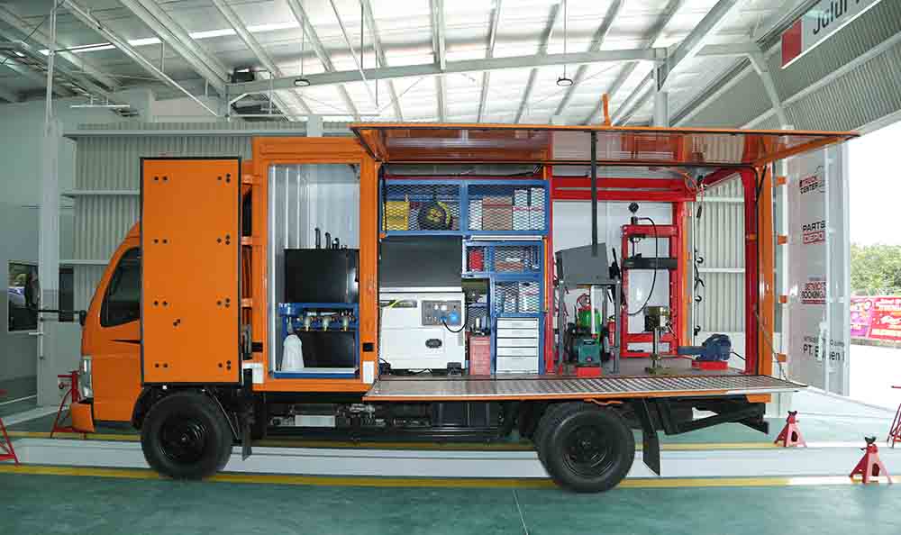 Dibangun di atas lahan seluas 3.500m2 dengan luas bangunan 1.423m2. Dealer ini telah dilengkapi dengan berbagai fasilitas untuk kenyamanan konsumen seperti ruang tunggu konsumen baik di showroom maupun di workshop area, kids zone dan smooking room. Di area workshop untuk melayani perawatan dan perbaikan truk konsumen terdapat 4 stall besar dan 1 truck pit yang mampu menampung hingga 10 unit per hari.