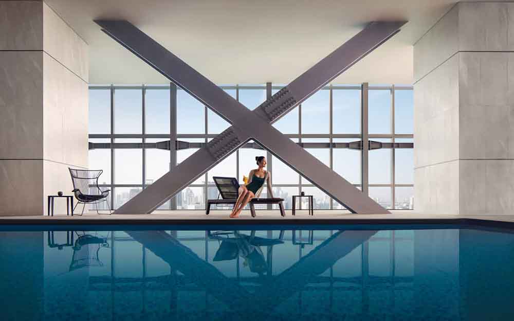 Dihiasi dengan dinding marmer mewah dan diterangi oleh cahaya lembut dari chandelier yang anggun, lobi hotel memancarkan aura yang elegan namun tetap bersahaja. Selain itu, Pan Pacific Jakarta menawarkan berbagai fasilitas yang dirancang untuk memberikan pengalaman yang santai dan menyegarkan bagi tamu. Terletak di lantai 71, hotel ini memiliki kolam renang dalam ruangan untuk pengalaman berenang di dalam lingkungan yang tenang. Para penggemar kebugaran pun dapat memanfaatkan gym yang lengkap, sementara mereka yang mencari relaksasi dapat menikmati steam room.