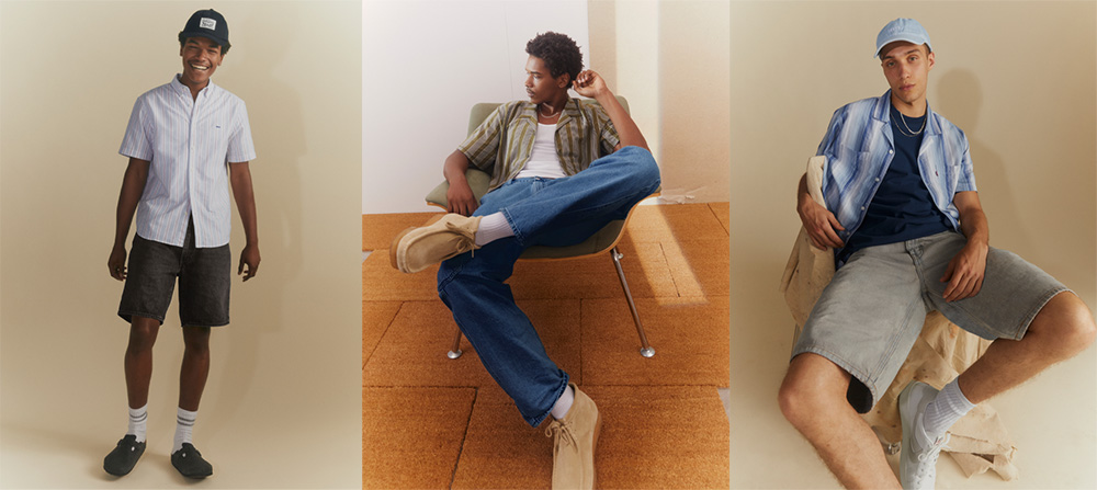 Untuk koleksi pria, terdapat celana pendek denim 468 Stay Loose dan The XX Authentic Chino Short, celana pendek musim panas dengan gaya yang preppy namun tetap santai. Kali ini Classic 501® Original Short juga dibuat menggunakan denim baru yang lebih ringan untuk memberikan fit yang lebih leluasa dengan tampilan yang otentik. 568TM Loose Straight Cargo menambahkan gaya effortless lainnya ke dalam koleksi ini.