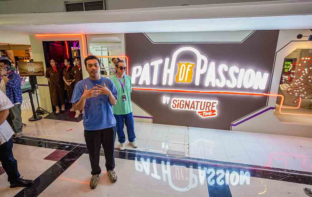 Abimanyu Ghani selaku Consumer Engagement Signature, di instalasi Path of Passion by Signature Time. Signature Time melalui sebuah movement Path of Passion kembali hadir di Brightspot Mall 2024 untuk mengkomunikasikan bahwa setiap orang berhak me-RASAKAN NIKMATNYA HIDUP, mengerjakan passion mereka dengan melawan stigma sosial yang mereka hadapi.