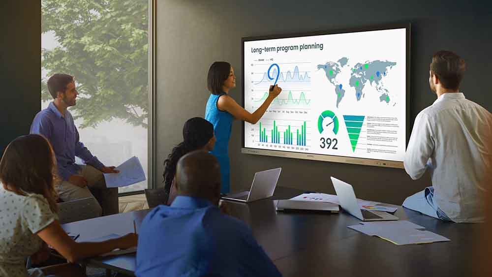 Tak hanya itu, adanya fitur InstaShare 2 memungkinkan koneksi hingga sembilan perangkat secara nirkabel, sehingga presentasi dan diskusi dapat berlangsung lebih dinamis dan interaktif. Dengan layar 4K ultra HD, gambar yang ditampilkan juga menjadi lebih tajam dan jernih, memberikan pengalaman visual yang lebih nyaman bagi pengguna.