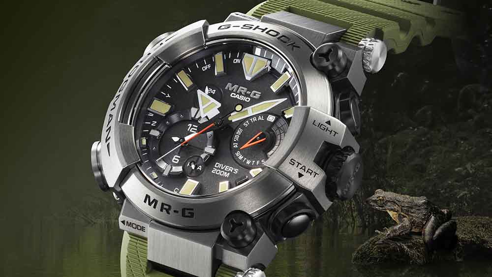 Diver’s watch tahan benturan FROGMAN dikenal akan desain asimetris agar tangan pengguna bebas bergerak ketika berada di bawah air. MRG-BF1000R, dilansir pada 2023, menggunakan format unik tersebut dan memakai bahan titanium yang sangat tahan air. Konstruksi cermat dari jam tangan ini, termasuk polesan menarik hingga pada detail terkecil, mendapat banyak pujian dari penggemar.