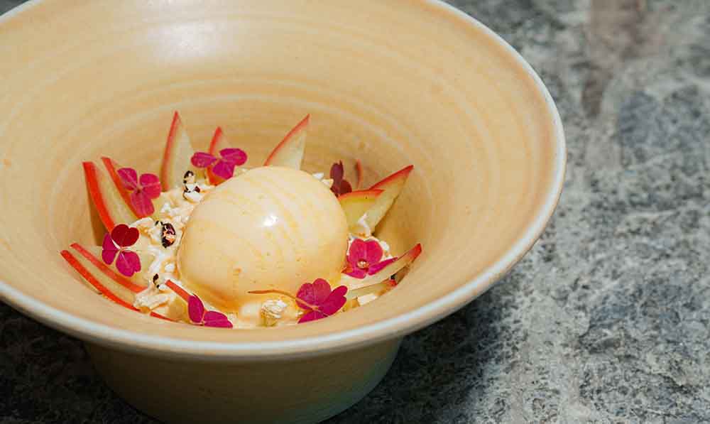 • Salad Musiman | Alpukat | Markisa – Campuran alpukat, mentimun, sayuran segar musiman, dan bunga yang dapat dimakan, disajikan dengan saus markisa dan ketumbar yang menyegarkan.